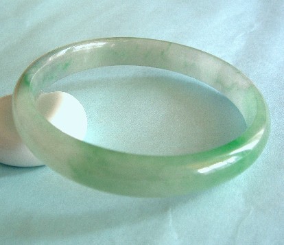 -translucent highly polished Chinese Yunnan jade bangle in mottled, fresh